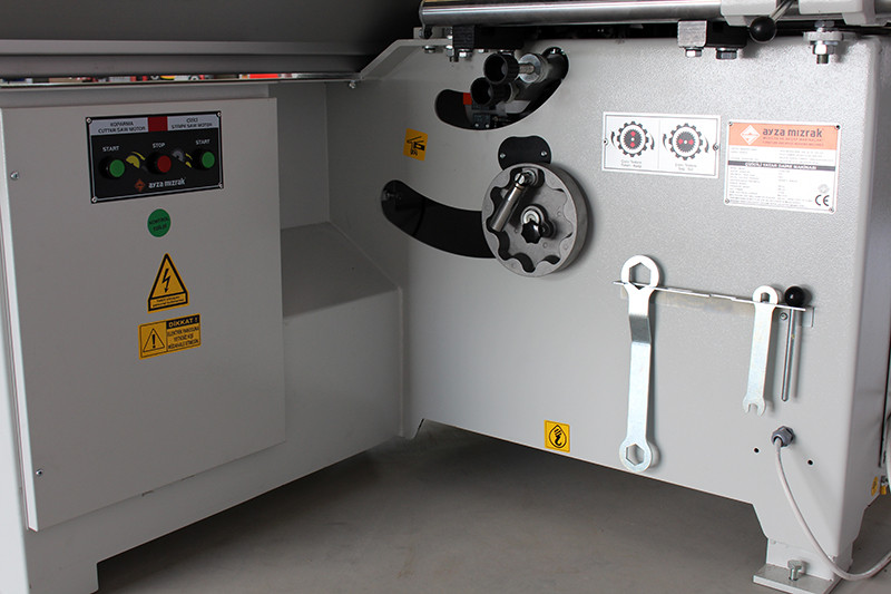НАЗНАЧЕНИЕ: Форматно-раскроечный станок Ayza Mizrak TITAN 3200 предназначен для продольного, поперечного и углового раскроя плитных материалов (МДФ, ДВП, ДСП и клееных щитов) облицованных и ламинированных, с предварительной подрезкой нижней кромки для исключения сколов. ОБЛАСТЬ ПРИМЕНЕНИЯ: Идеально подходит для применения на предприятиях по производству всех видов мебели, столярно-строительных изделий и других деревообрабатывающих производствах. ПОЛУЧАЕМЫЕ ИЗДЕЛИЯ: СХЕМЫ ОБРАБОТКИ: ОТЛИЧИТЕЛЬНЫЕ ОСОБЕННОСТИ: Идеальная точность, непревзойденное качество, европейская надежность, продуманность конструкции, простота настройки и обслуживания - отличительные черты нового форматно-раскроечного станка Ayza Mizrak TITAN 3200. КОНСТРУКТИВНЫЕ ОСОБЕННОСТИ: ВИСОКОТОЧНА АЛЮМІНІЄВА КАРЕТКА Відмінною особливістю каретки верстата є те, що напрямні циліндричні і мають великий перетин. Напрямні не схильні до деформації і забезпечують абсолютну рівність ходу. За рахунок того, що пляма контакту кульки і направляючої знижена, верстат володіє феноменальною легкістю ходу каретки. ТЕЛЕСКОПІЧНА УПОРНА ЛІНІЙКА Поперечна лінійка виготовлена з алюмінієвого профілю великого перерізу. Володіє високою підвищеною жорсткістю і опором до зношування. Розширювальний стіл великого формату має західний ролик для зручності завантаження і вивантаження листів матеріалу без пошкодження поверхні. ОСНОВНИЙ СТІЛ Основний стіл і кріплення пильного вузла виконано з чавуну для конструктивної потужності, стабільності роботи верстата і відсутності вібрацій. Також робочий стіл і розширення в вправо ідеально відшліфоване для високої точності обробки заготовки і гарного ковзання матеріалу по столу. ПИЛЬНИЙ ВУЗОЛ Конструкція пильного вузла розроблена із застосуванням сучасних систем тривимірного моделювання. Сам пильний вузол відлитий з вібростійкого сірого чавуну. Така технологія виробництва застосовується всіма провідними світовими виробниками форматно-розкрійних верстатів. ДОДАТКОВА ЛІНІЙКА Для кутових різів в базову комплектацію верстата входить кутова лінійка, яка поставляється разом з ексцентриковим притиском. Ексцентриковий притиск встановлений поряд з поперечною лінійкою. ПУЛЬТ УПРАВЛІННЯ Пульт управління верстатом задубльований з боку паралельної лінійки і дозволяє оператору швидко включити / вимкнути приводи пил. Кнопки запуску мають зручне для оператора положення. Кут нахилу регулюється за допомогою маховика годинного типу на передній панелі верстата. Також на панелі розташована кнопка аварійної зупинки верстата. Комплект поставки: параллельный упор, перпендикулярный телескопический упор, угловой упор, эксцентриковый прижим. Достоинства нашей компании Услуги оперативной доставки по всей нашей стране (со скидкой до 50%) Оплата частями или отсрочка оплаты, а также программы кредитования и лизинга Гарантийное и послегарантийное обслуживание Монтаж, подготовка и пусконаладочные работы Как купить оборудование или заказать услугу в нашем интернет магазине Заказать на сайте Обратная связь Оплата любым платежом Доставка удобным Вам способом