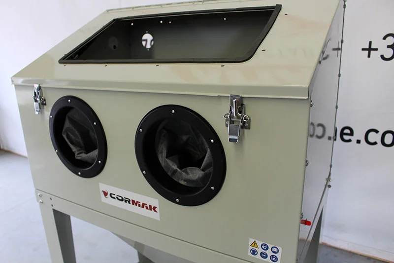 Пескоструйная камера CORMAK подключенная к компрессору, является идеальным решением для быстрой, точной и эффективной очистки различных поверхностей, например, от ржавчины, краски, отложений на поверхности металла, таких как автомобильные детали, двигатели, фитинги, корпус, колеса, ободья, петли и т.д.