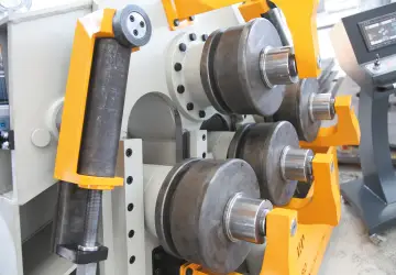 Линейное перемещение роликов на прямолинейных направляющих обеспечивают высокий гибочный потенциал и долгий срок службы машины. Прямолинейные направляющие и четырехвалковая схема расположения роликов позволяют получать наименьший плоский участок на концах согнутых изделий.