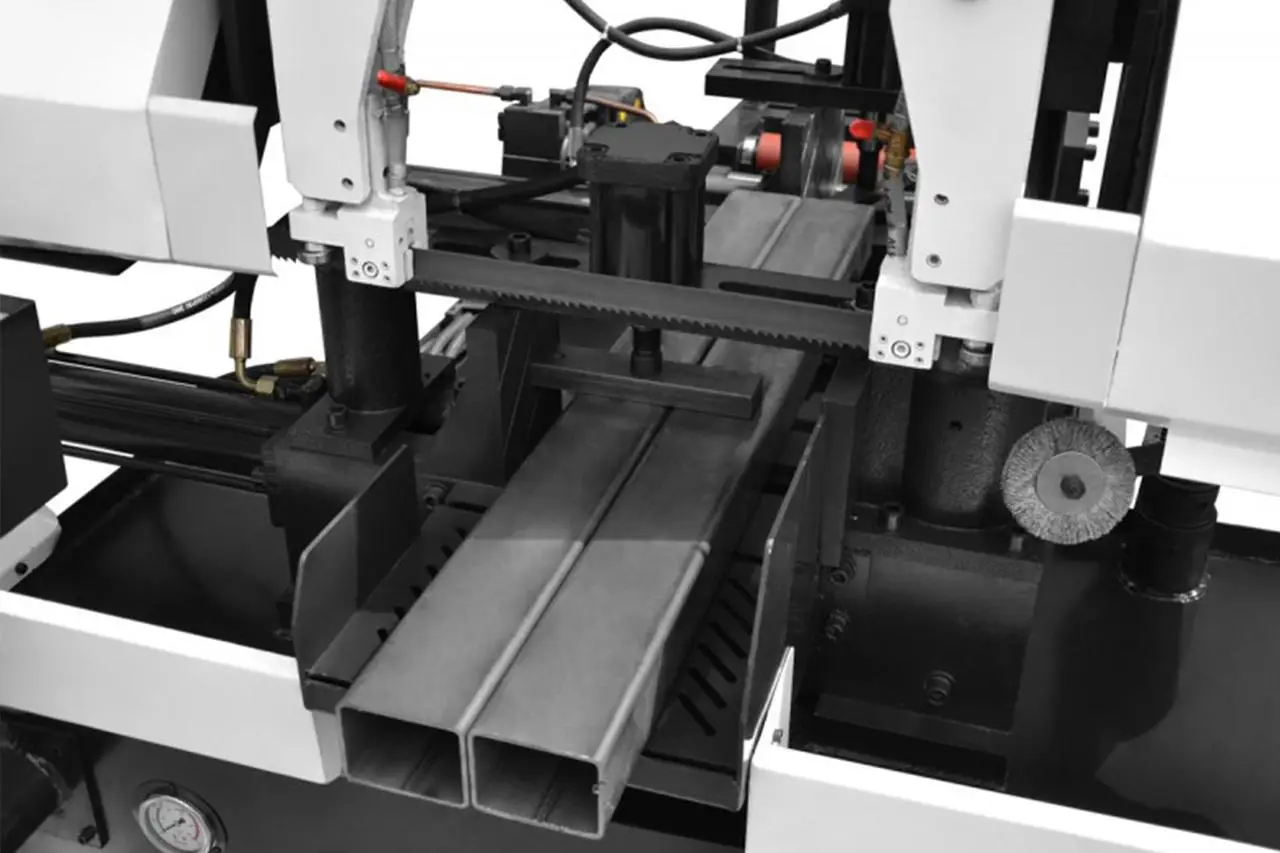 ОСОБЕННОСТИ:Ленточнопильный станок CORMAK H260SA представляет собой высокопроизводительный станок для резки прутков, труб и профилей из стали, чугуна и цветных металлов в автоматическом цикле. Прочный корпус и прочная рама пилы в сочетании с конструкцией стойки обеспечивают превосходную жесткость и исключительный уровень стабильности в процессе резки даже самых сложных металлообработок.ПАРАМЕТРЫ РЕЗКИ: ПРЕИМУЩЕСТВА:Пила позволяет выполнять ручную и автоматическую резку. Ручной режим позволяет выполнять все действия вручную с панели управления машины. Автоматический режим - после включения станка выполняется весь цикл резки, т.к.: закрепление заготовки в тисках, перекладывание ее на определенный размер к режущей ленте, опускание режущего рычага и подъем на нужную высоту после окончания реза, происходит без участия оператора. Параметры раскроя, такие как количество распиливаемых деталей, их размеры, скорость движения ленточной пилы, скорость опускания руки, задаются на панели управления. Станок автоматически останавливается при резке серии, обрыве режущей ленты или другой неисправности, обнаруженной системой управления режущего станка. Корпус машины выполнен из чугуна, установленного на жесткую пространственную конструкцию из пластинчатого корпуса. Внутри корпуса расположены: гидроагрегат, бак охлаждающей жидкости с насосом и питателем стружки. Стальная конструкция рамы наклонена под углом 3 градуса по отношению к поверхности подающего стола, что особенно удобно при резке прямоугольных элементов и профилей. Привод режущей ленты на базе двигателя с инверторным управлением обеспечивает плавную регулировку в большом диапазоне скоростей. Гидравлическое натяжение позволяет получить оптимальные условия работы пыльной ленты. Если пила ломается, машина останавливается автоматически. Точное направление ленты обеспечивают направляющие. Подвижная головка, направляющая ленту, устанавливается в зависимости от размеров разрезаемого материала, что повышает стабильность работы ленты. Система охлаждения и чистящая щетка обеспечивают максимальные параметры резки и увеличенный срок службы пилы. Гидравлически принудительное опускание стрелы регулируется в широком диапазоне точным дроссельным клапаном. Система быстрой подачи позволяет сократить время резки отдельных элементов. Гидравлическая система подачи материала обеспечивает полностью автоматический цикл работы машины. Контроллер, оснащенный ЖК-дисплеем, позволяет программировать работу пилы, сигнализирует об окончании материала, сообщает об ошибках и информирует о количестве отрезанных секций по истечении запрограммированного времени. Максимальная длина подачи материала за один ход составляет 500 мм с точностью +/- 0,2 мм за ход. Инновации и производство полуавтоматических и автоматических резаков CORMAK в соответствии с нормами и стандартами, соответствующими сертификатам ISO: 90001 и ISO: 140001, гарантируют безопасность, качество и надежность продукции. Использование двигателей, лицензированных известным и уважаемым мировым производителем, одним из мировых лидеров, компанией ABB, гарантирует долгую и безотказную работу.]]>